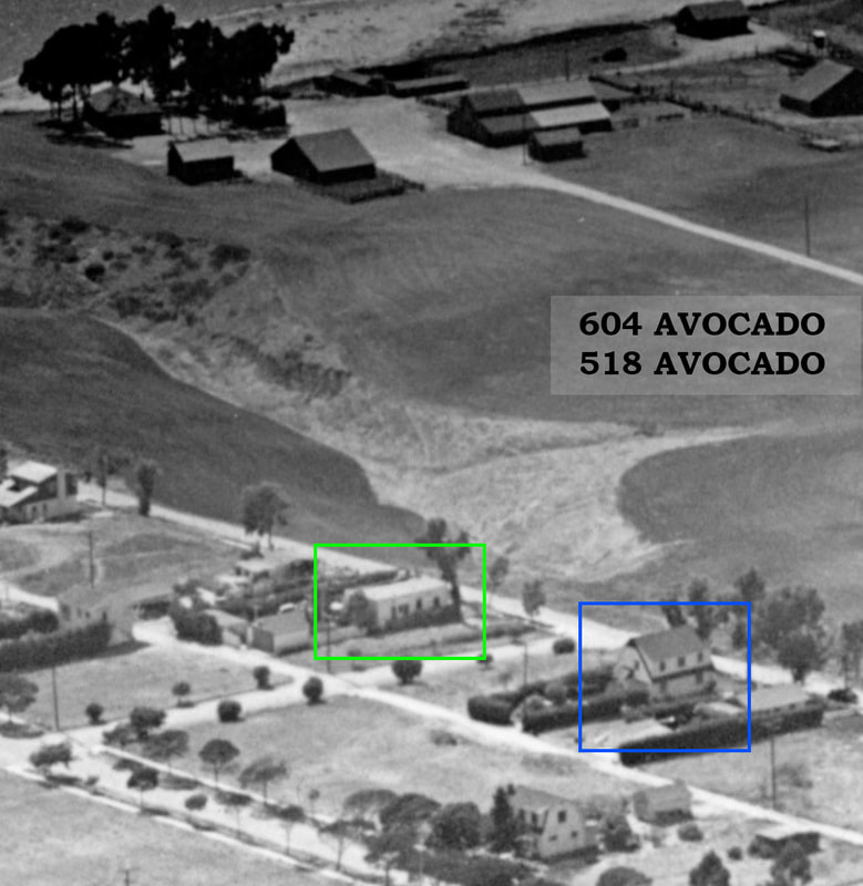 A block away is 214 Dahlia Ave. which is listed as a 1914 house but according to an interview a few years ago with the owner, it was actually built much earlier and moved from an Irvine bean farm to its current location. He said that he has a photo of it from 1910 when it was a barn in Irvine (we desperately need a copy of this photo!) but that it may be much older.