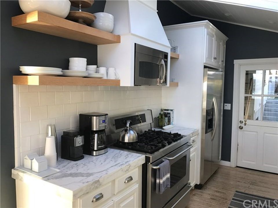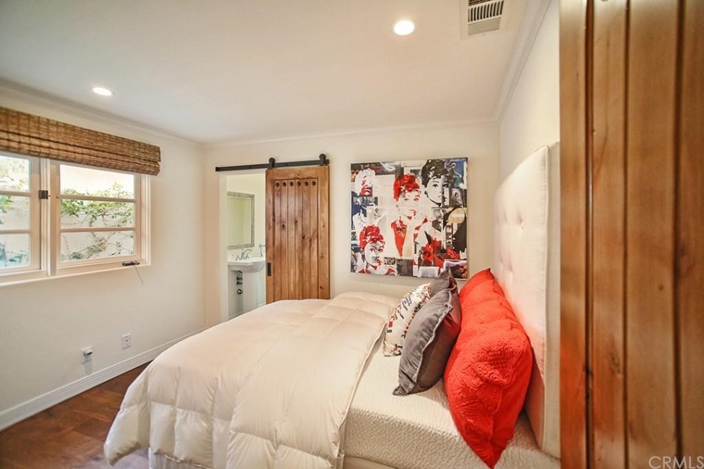 This 1951 Spanish style cottage was renovated in the early 2000s but maintains a great updated, original look. Wood floors, exposed beams, curved doorways, and vintage-looking doors maintain the great character of this cottage that features great indoor and outdoor space.